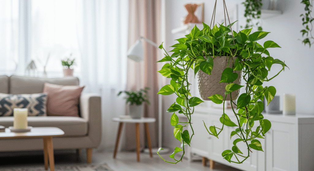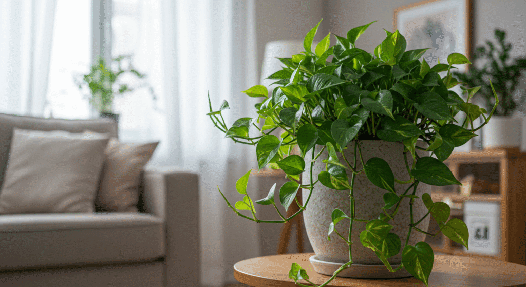 Se você curte plantas que crescem rápido e são fáceis de propagar, a Pothos é a escolha ideal. Basta um galhinho na água para ela criar raízes.