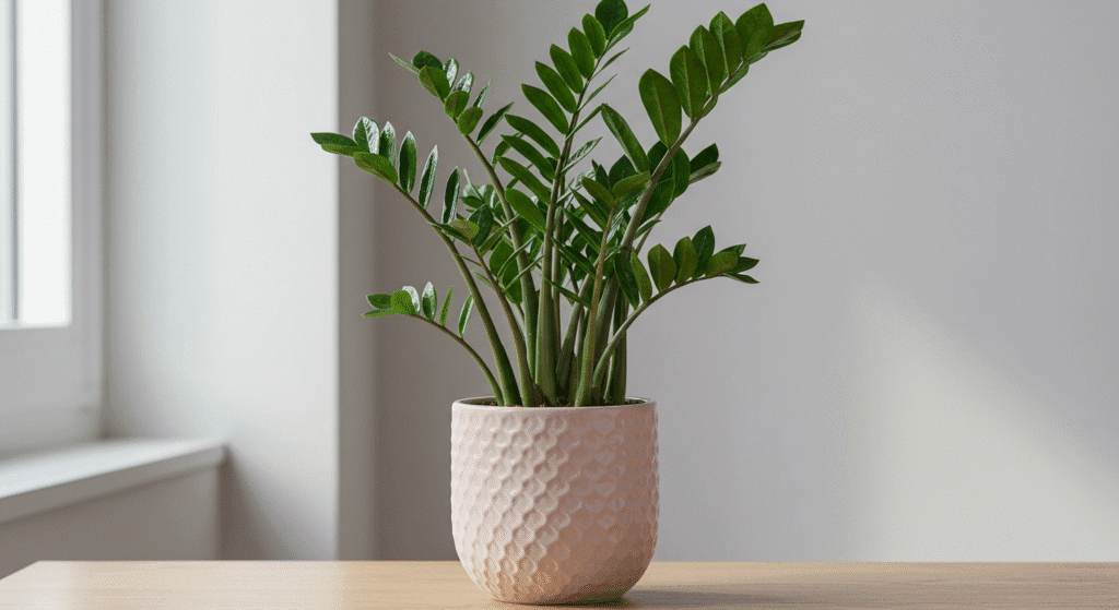 Quer uma planta charmosa e resistente? Aposte na Zamioculca. Ela ama ambientes internos e vive bem mesmo em lugares com pouca luz.