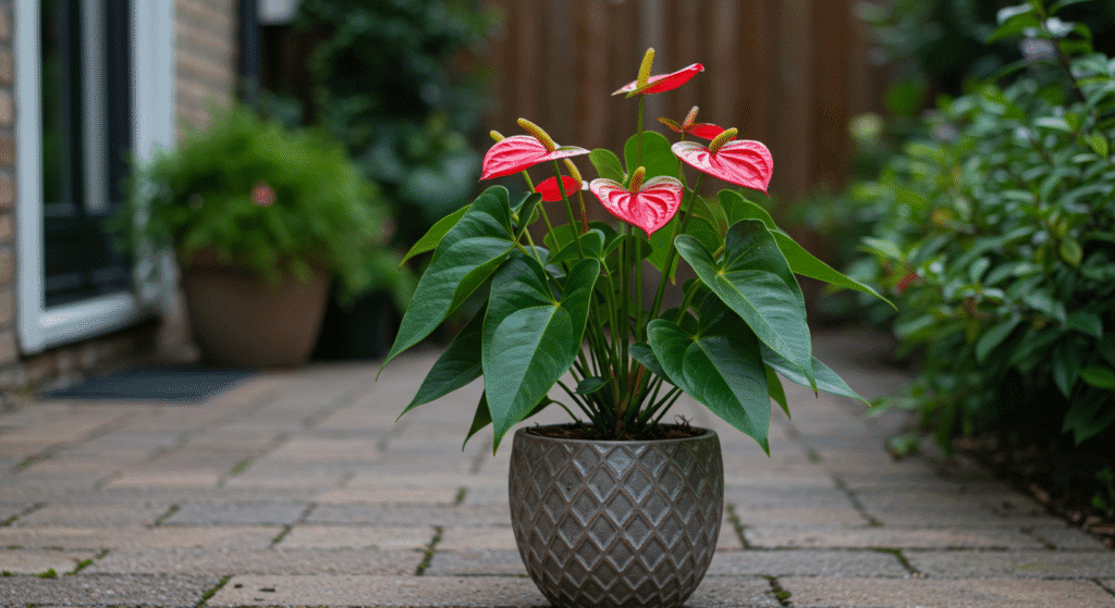 Com suas flores vermelhas ou rosadas, o Antúrio é uma opção linda e resistente.